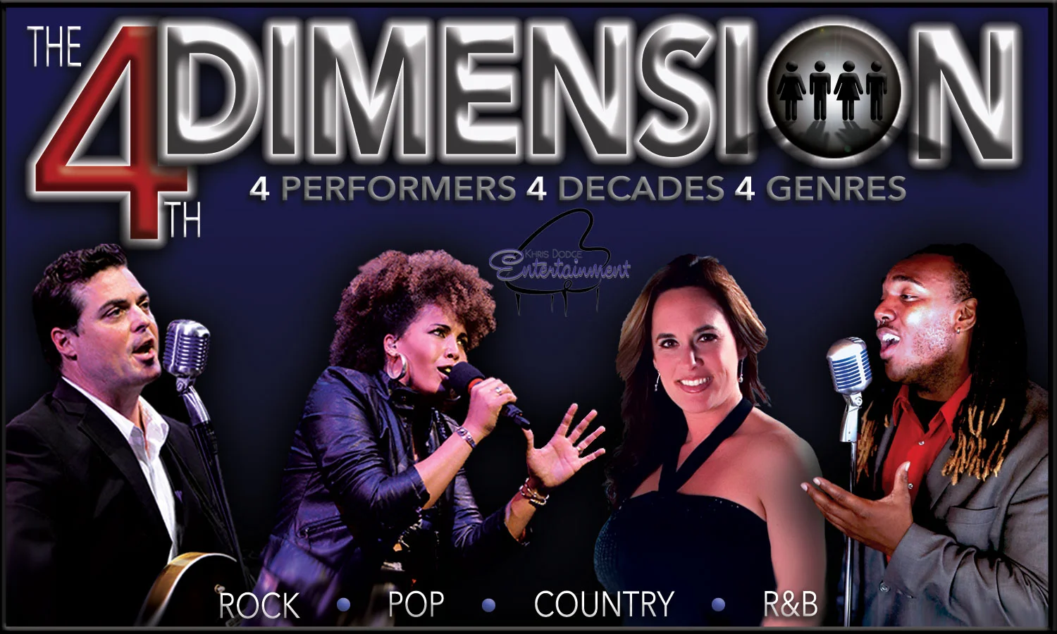 The 4th Dimension is a show that brings together the out-of-this-world talent of 4 different performers and treats the audience to some of the greatest hits spanning 4 decades.  This show is divers in its musical presentation but universal in that every song is selected because of their timeless quality.  With great harmonies, amazing instrumentation, and an incredibly fun stage show, The 4th Dimension is pure entertainment.